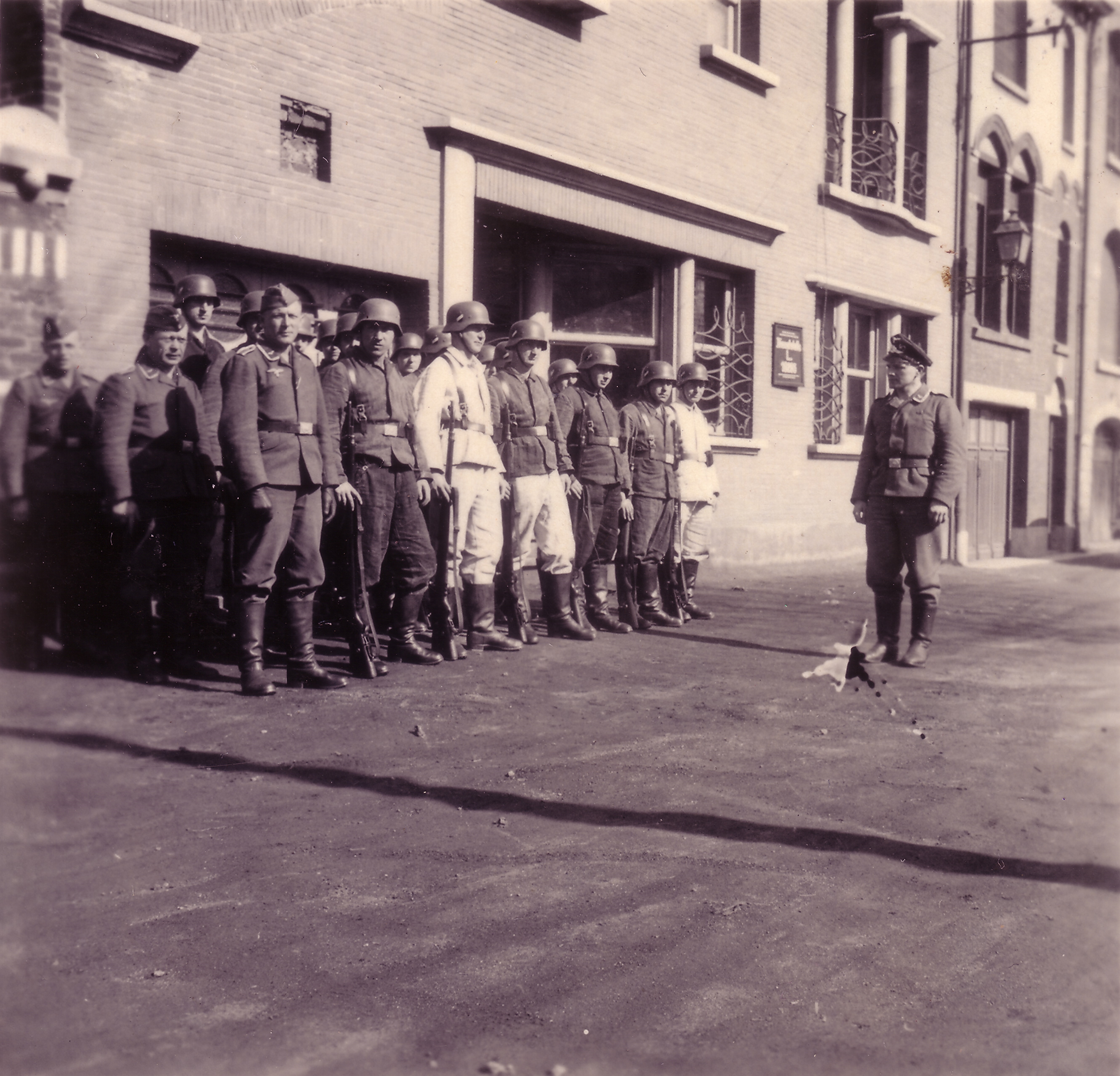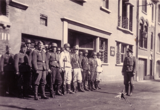 Photos de Flers et le Repas pendant l'Occupation Ces photos ont été achetées en 2017 à un vendeur domicilié en Moselle, via un site spécialisé dans la vente de cartes postales. Elles semblent toutes provenir de l'album photo d'un même soldat allemand servant dans l'armée de l'air, la Luftwaffe. Les personnels au sol étaient surnommés les "rampants". Il est possible d'agrandir et de télécharger les images en haute qualité en cliquant sur les miniatures. Merci à Stéphane Robine et Valentin Schneider pour les renseignements qu'ils m'ont fournis.