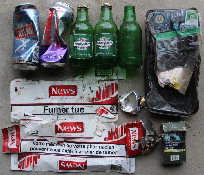 FÉVRIER 2019 24 février 2019 (31 déchets et toujours de nouvelles bières) 23 février 2019 (28 déchets par un soleil printanier, on boit davantage qu'on ne mange) 20 février 2019 (15 déchets) 19 février 2019 (10 déchets, minimum minimorum) 18 février 2019 (108 déchets dont une moitié ici et le reste dans une poubelle en cours de route, sur 14 km de randonnée à pied) 17 février 2019 (36 déchets, encore une belle moisson) 16 février 2019 (22 déchets, on fume autant qu'on boit ces derniers temps) 13 février 2019 (38 déchets, le filon est inépuisable) 12 février 2019 (18 dont ces 16 là, journée ordinaire) 11 février 2019 (26 déchets, dont un bon morceau de pneu) 9 février 2019 (4 déchets au bord de la route. Sur le sac il est écrit : Ne pas jeter dans la nature) 3 février 2019 (27 déchets, il y a de bons filons sur certaines routes) Retour |