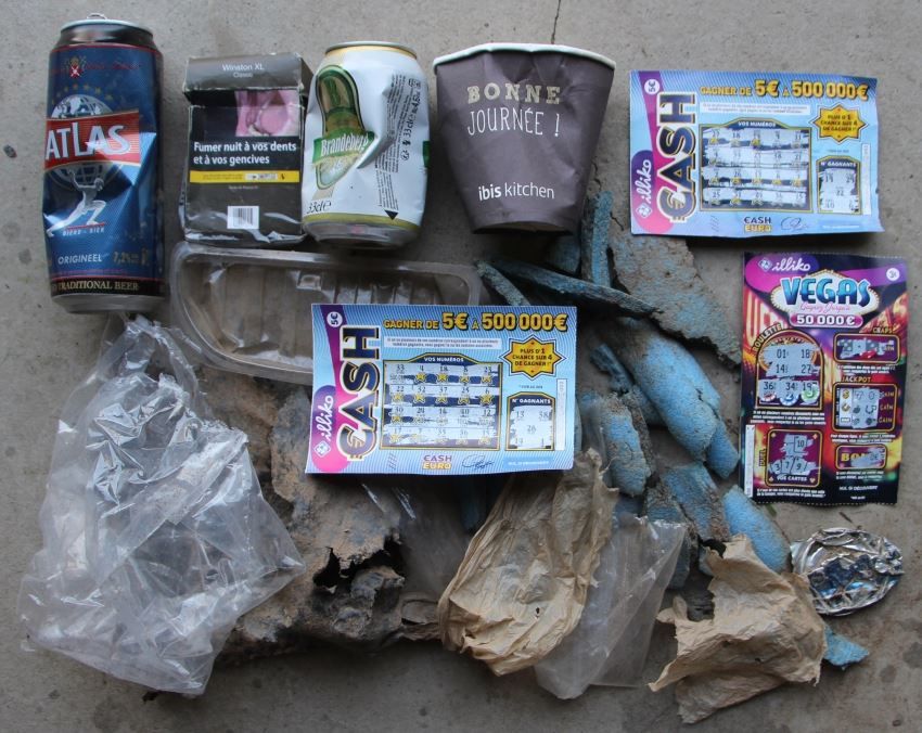 2019 (14 déchets, dont un paquet de cigarettes polonais qui a
