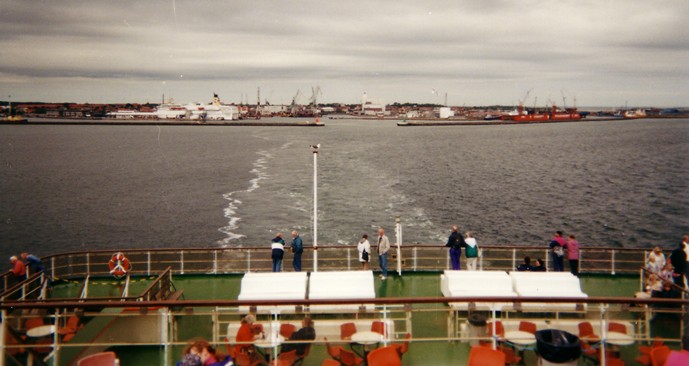 L’adieu au Danemark Le ferry est ici un moyen de locomotion des plus naturels, un peu comme le bus en France. La traversée du Kattegat entre le Danemark et la Suède ne dure que trois heures, et le prix (80 francs) ne représente que le tiers de ce que j’ai dépensé la veille pour réparer mon vélo.