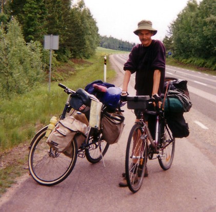 Erik au moment de notre rencontre, dans le sud de la Suède. Erik est ainsi allé au Maroc, le pays le plus hospitalier qu’il connaisse. De là, il a traversé le Sahara avec l’aide d’un routier qui a accepté de le transporter pendant plusieurs jours. Au Niger, en plein continent africain, il a vu dans un commissariat de police un homme gisant à terre, le crâne fracassé par une balle. Mais ce n’est pas son seul souvenir marquant de ce pays: il a en effet vu un jour un homme accroupi sur le bord de la piste, faisant tranquillement ses besoins tout en souriant et en saluant les passants... Pour pouvoir entrer en Israël, son vélo a du subir le test des rayons X, histoire de vérifier qu’aucune arme n’était dissimulée à l’intérieur du cadre! Erik est resté six mois dans ce pays, pendant lesquels il a travaillé dans un kibboutz. Un jour, alors qu’il se promenait tranquillement dans le nord du pays, des militaires israéliens lui sont tombés dessus. Il venait en effet de pénétrer dans le Golan, une zone interdite revendiquée par la Syrie! Son meilleur souvenir? Les îles Andaman, près de la Thaïlande. Les grandes villes des Etats-Unis lui ont par contre laissé une mauvaise impression, car l’insécurité y règne. Une coïncidence amusante: en 1993, nous étions tous les deux dans la ville roumaine de Cluj-Napoca, à quelques jours d’intervalle! A côté de tout cela, mon propre périple n’est plus qu’une simple promenade et semble un peu ridicule. Tout est relatif...