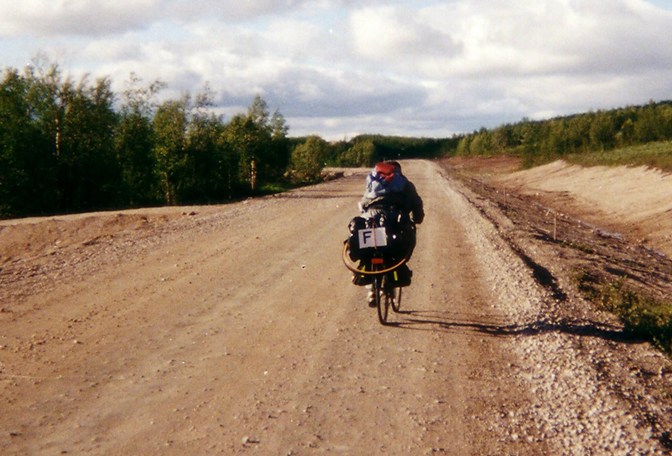 Le petit port de Slottsbron, au nord du lac de Vänern. J’entre alors en pleine taïga, une immense forêt de conifères recouvrant la quasi-totalité de la Scandinavie. L’industrie du bois y est prospère, et les rares véhicules que l’on rencontre par ici sont souvent de gigantesques poids lourds transportant des troncs d’arbres. Et pourtant, c’est en cet endroit perdu au milieu de nulle part que je rencontre un cycliste lourdement chargé, un "collègue" en somme! Erik, 31 ans, est néerlandais. Il se rend lui aussi à vélo au Cap Nord et nous décidons alors de faire route commune. Il pense ensuite se diriger vers la Russie, d’où il prendra le bateau pour l’Arabie Saoudite! Erik m’étonne beaucoup: il a pas mal voyagé, parle trois langues couramment, mais ne sait quasiment ni lire ni écrire! Sans qualification, il aurait pu reprendre la boutique de ses parents, marchands de vélos. Mais non, il préfère sillonner le monde à bicyclette! Il vit de petits boulots, met un peu d’argent de côté puis reprend la route. Il vit ainsi en moyenne neuf mois sur douze hors de son pays. Quand il me raconte ses aventures, je l’écoute comme un gosse, émerveillé.