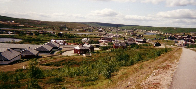 La petite ville dispersée de Kautokeino, capitale des Lapons Kautokeino fait figure de grande ville dans le Finnmark, et pourtant elle ne doit guère compter plus de 2000 habitants. Nous profitons de notre passage dans cette ville pour nous réapprovisionner et changer de l’argent à la poste, car d’ici la côte nos cartes routières ne mentionnent pas même un village. Sur 130 kilomètres, nous allons quand même rencontrer des traces de vie humaine, mais très superficielles. Par exemple, à Gievdnjeguoikka, mis à part la pancarte indiquant ce lieu, nous ne voyons rien, rien, rien, pas même une maison! Les rivières sont nombreuses et leur eau fraîche et pure nous rend service bien des fois. Quant au paysage, c’est toujours le même: des petits bouleaux à perte de vue. Nous commençons à avoir un peu froid: en plein jour, la température n’excède guère les 10°C, même par beau temps! En soirée, le décor change du tout au tout. La transition est brutale. Nous descendons à toute allure un long défilé empli par le grondement d’un torrent, où le vent que nous venions de subir des heures durant a disparu, et où règne un microclimat permettant aux arbres de pousser. Nous y voyons même des pins! Au fur et à mesure que nous nous rapprochons de la côte, 1a végétation devient de plus en plus riche. On retrouve même du pissenlit et de nombreuses petites fleurs! Et enfin nous arrivons devant l’Océan Glacial Arctique, ou plus exactement la Mer de Barents.