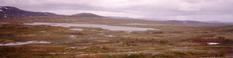 Mon entrée en Norvège Du haut d’une colline, nous apercevons d’imposantes montagnes distantes de quarante kilomètres. D’ici là s’étend une immense plaine quasi-désertique que nous devons traverser. Sur ces quarante kilomètres, nous ne rencontrons que deux villages: Aiddejavrre et Siebe. Nous ressentons l’incompréhension la plus totale: comment peut-on en effet vivre ici, au milieu de nulle part? La taïga a maintenant fait place à la toundra. La forêt de conifères a disparu progressivement au profit d’une végétation pauvre et discontinue, composée essentiellement de mousses et de lichens, de petits buissons et d’arbres nains, des bouleaux principalement, et le sous-sol est à présent gelé en profondeur en permanence.
