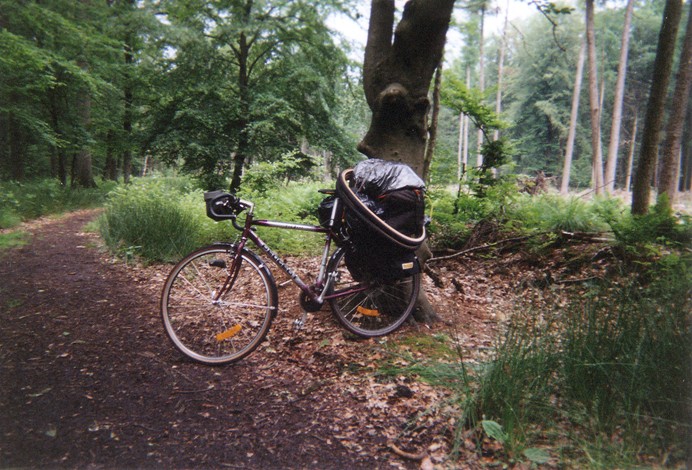Mon fidèle compagnon, se reposant dans une forêt, dans le nord de l’Allemagne. Pour en finir avec ces chiffres, voici un petit bilan de mes voyages à vélo de 1989 à 1995, tous effectués pendant mes vacances scolaires d’été: 1989: 50 km sur l’île de Guernesey, en juillet. Pour chacun des 25 pays traversés, les kilomètres se décomposent comme suit: KILOMÉTRAGE ET DUREE DES SEJOURS
